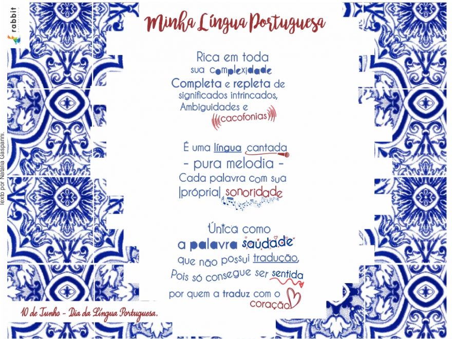 Hoje é o Dia da Língua Portuguesa, essa data foi escolhida em homenagem a Luís de Camões, poeta português que faleceu no dia 10 de junho de 1580. Segundo a ONU, o português é falado atualmente por pelo menos 235 milhões de pessoas como primeira língua em oito países que vão das Américas à Ásia.